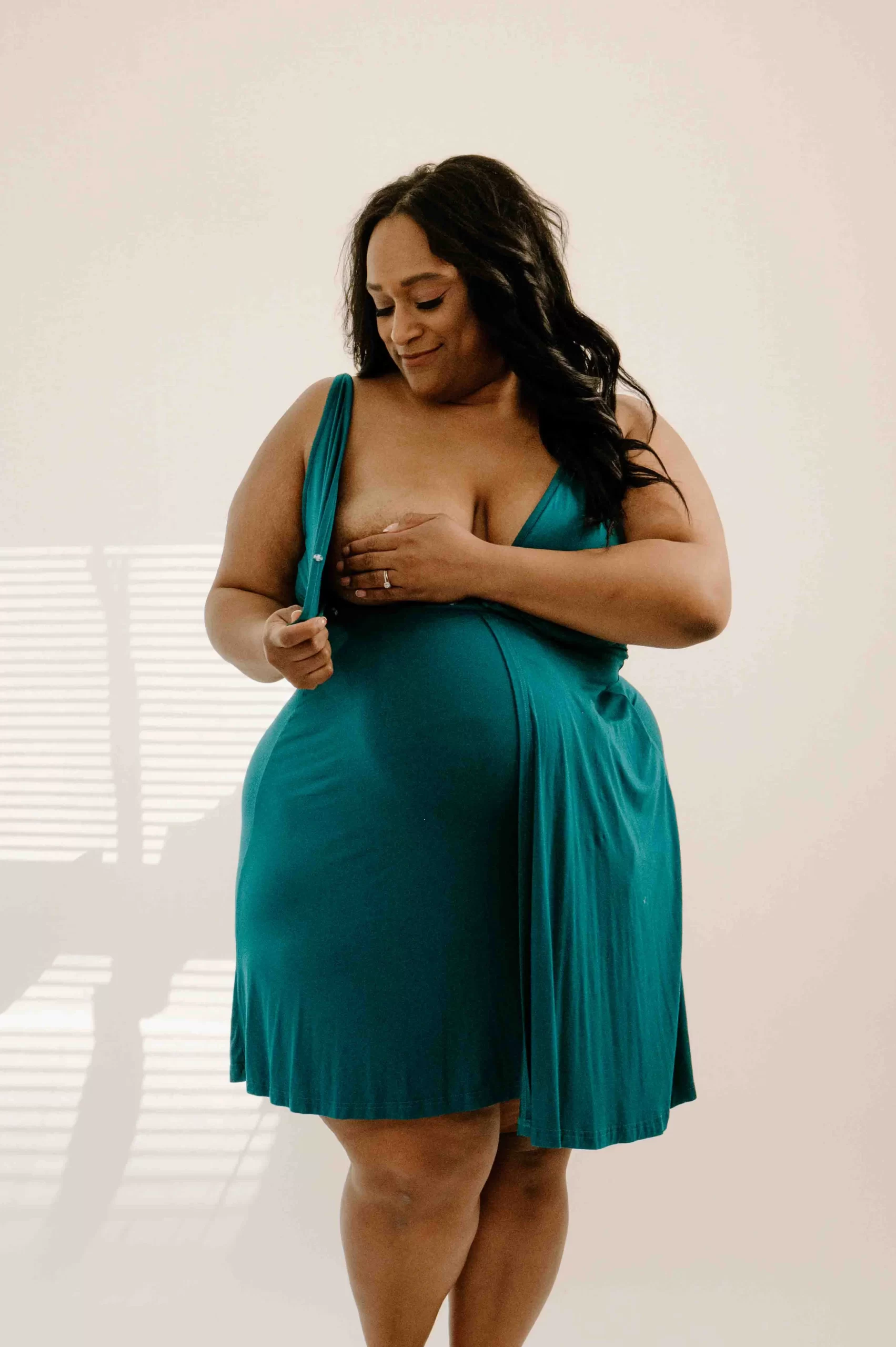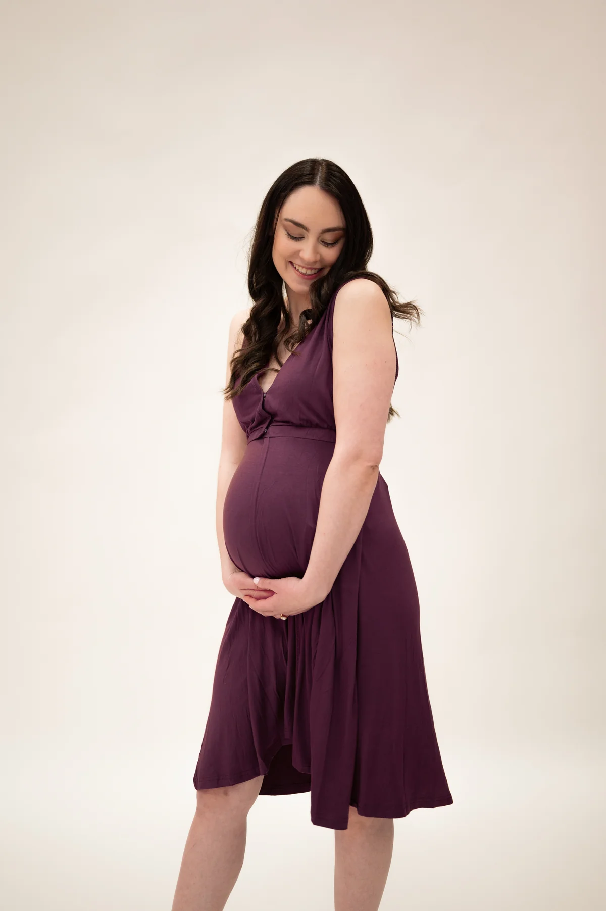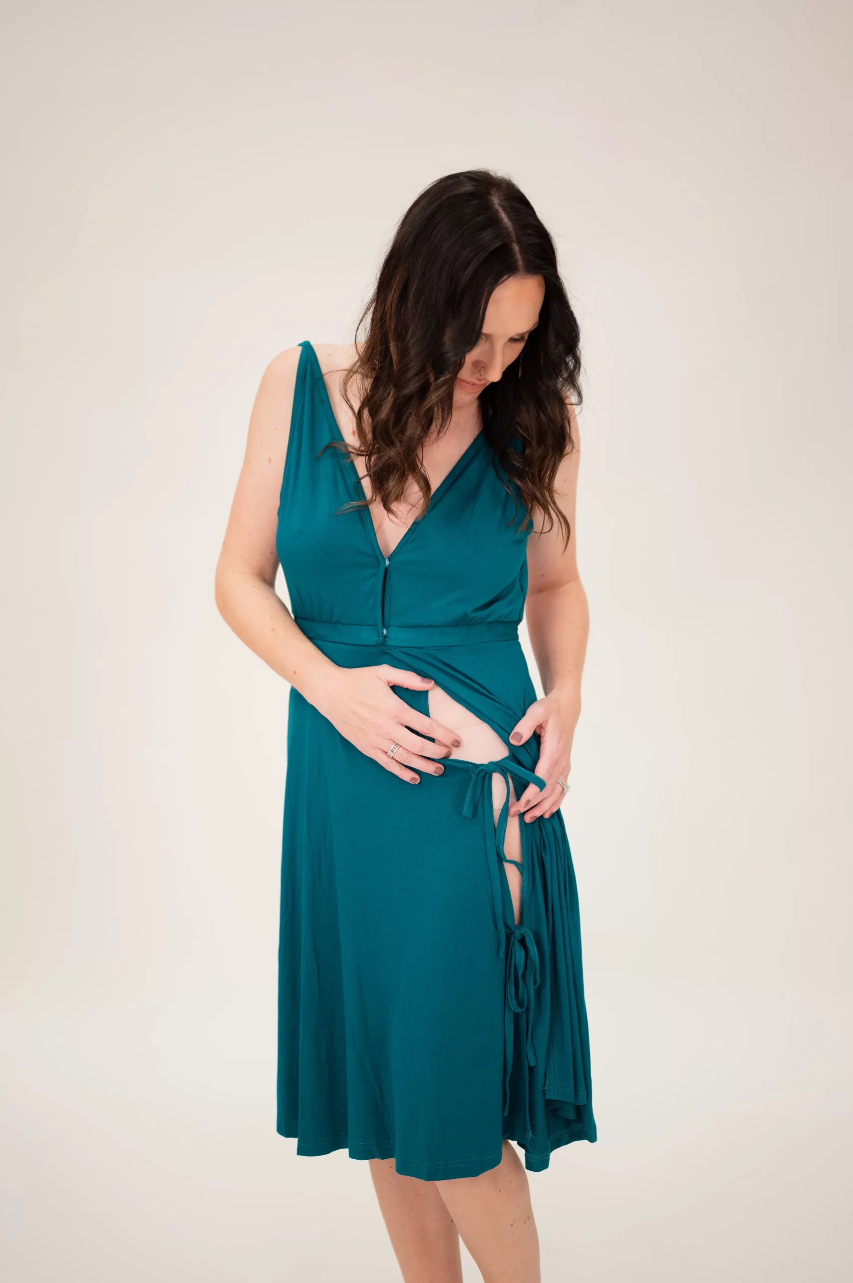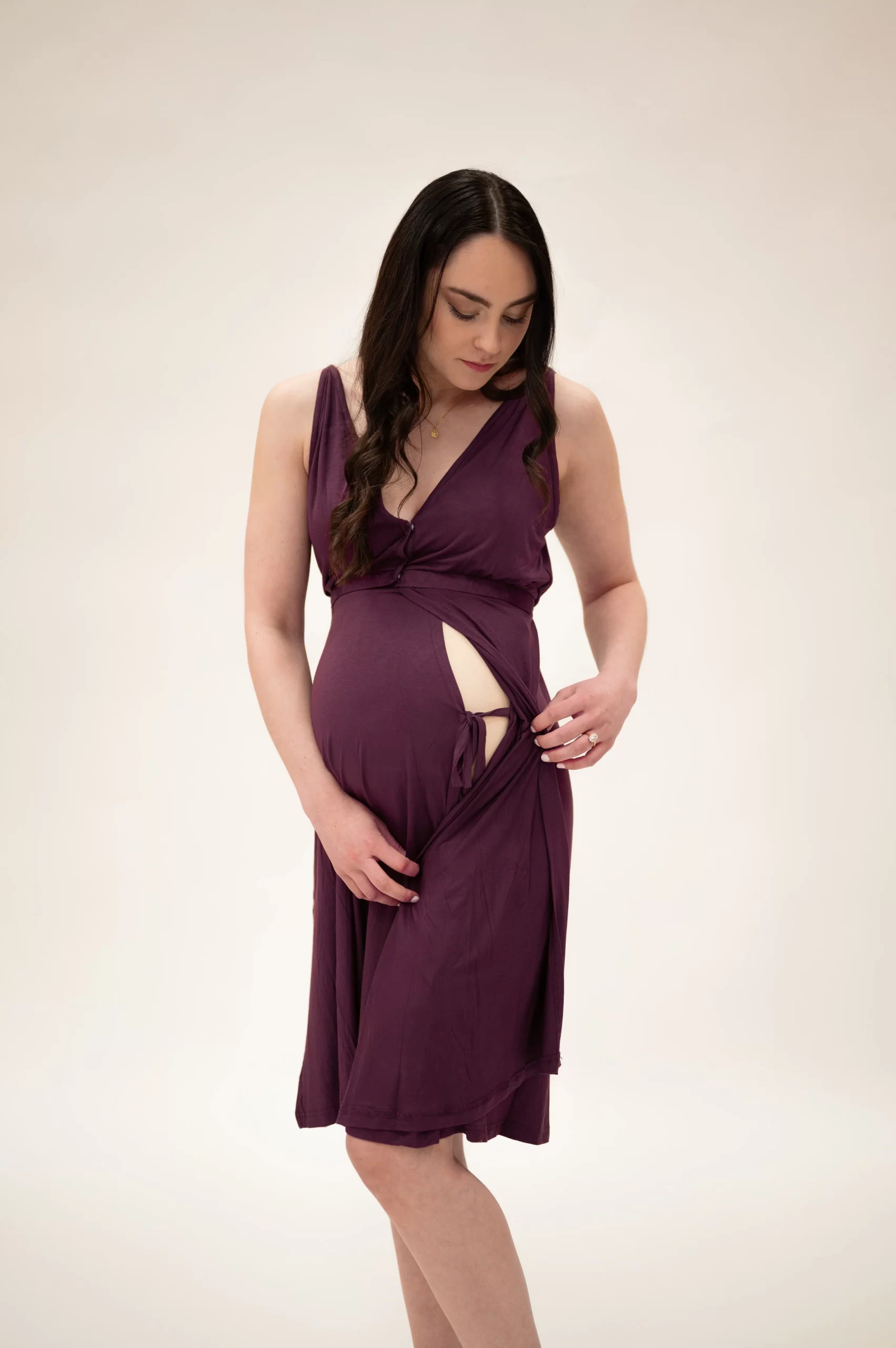 Enjoy this shortened, more lightweight alternative to the bestselling Lila gown. These labor and postpartum gowns from Lila Laborwear are designed with actual labor in mind by a Labor and Delivery Nurse and Doula. These gowns are intended to provide accessibility to your medical team, while still being stylish and comfortable for you.